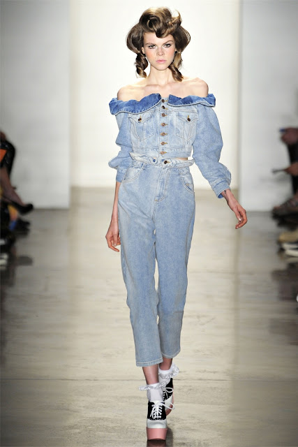 Jeremy Scott 2012年春夏這回在New York Fashion Week大放異彩,用誇張的西部牛仔風格創造出一套套具有話題性的街頭時尚,除了他一貫愛用的大膽色彩,這回的印花轉變成西岸地帶少不了的仙人掌,牛仔丹寧系列成為了最好的視覺開場,正如炎炎夏日,女孩露肩的荷葉邊外套,性感可愛的牛仔背心,男孩吊帶褲的童趣模樣或是故意開大洞在另人害羞地帶的牛仔長褲,這一開始就給人帶來笑料的驚喜;而粉嫩色系是Jeremy一直非常喜愛的色系,微微的加上一點的確讓整個服裝色彩顯得較柔和且不過於強烈,名模Andrej Pejic穿上看似像睡衣的眼鏡系列,卻變得像在渡假般地海灘上遊走,給這套服裝加分了不少,果然,下一套女孩穿上字樣寫著〝PARADISE(天堂)〞的長版背心小洋裝,叫人享受在自我幻想的天堂裡解熱;一系列仙人掌這時就開始驚豔登場,綠色、黃色的搭配顯得直接可愛又逗趣,連腰封都設計成槍袋的模樣,男模穿上大洞開在害羞地帶的皮褲,加上必有的鬚鬚設計,西部牛仔風格達到百分之百,只是變得不像電影裡看到的那種帥氣,多了很多的俏皮元素在裡面。